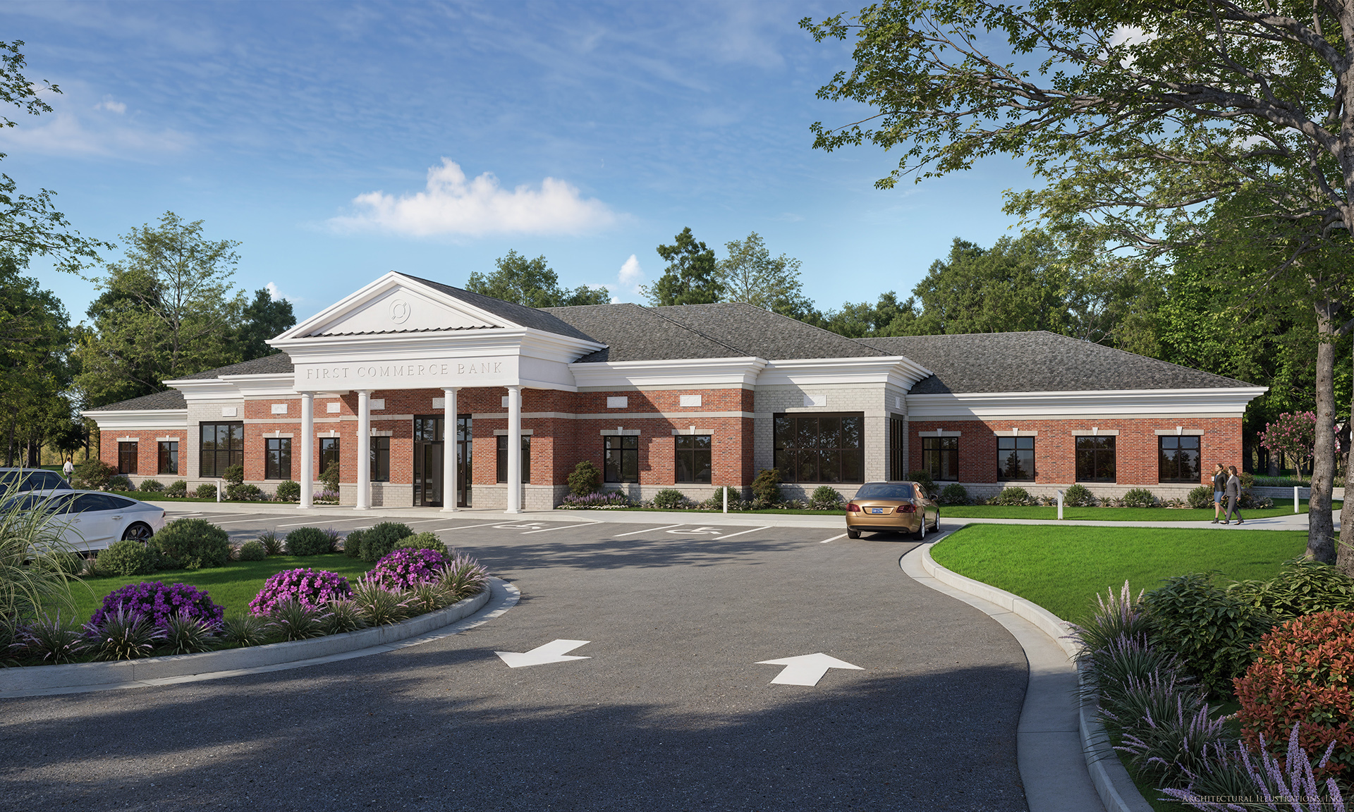 First Commerce Bank partnered with Eclipse Brand Builders to provide turnkey design-build services for the project, including architecture, engineering, interior design, and full-time on-site construction management. The collaboration ensures that all aspects of the development will meet the bank’s specific operational needs while maintaining high standards of design and functionality.