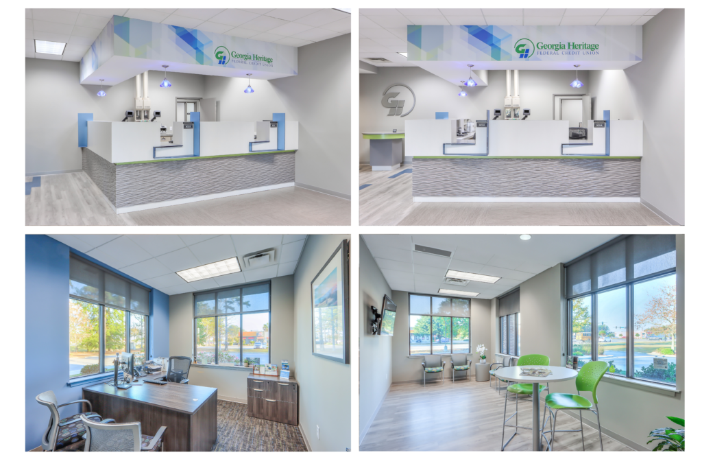 Georgia Heritage Federal Credit Union recently announced that it has completed renovations for its branch office located in Pooler, Georgia. Renovations include new graphic wall coverings, new reception desks, and updated countertops throughout, among other improvements that not only elevate the branch office aesthetically, but also help with functionality and member services. The overall goal of the renovation was to more efficiently serve members in the community.
