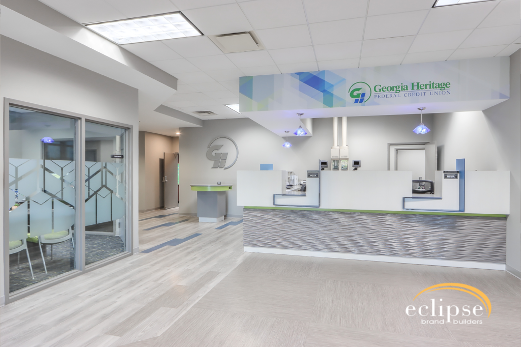 Eclipse Brand Builders was selected to handle the interior design and renovation of the credit union’s Pooler branch office. With an emphasis on the quality of the credit union’s brand and commitment to high-quality services for its members, Eclipse Brand Builders’ turnkey approach collaboratively aligns with the goals and needs of Georgia Heritage Federal Credit Union.