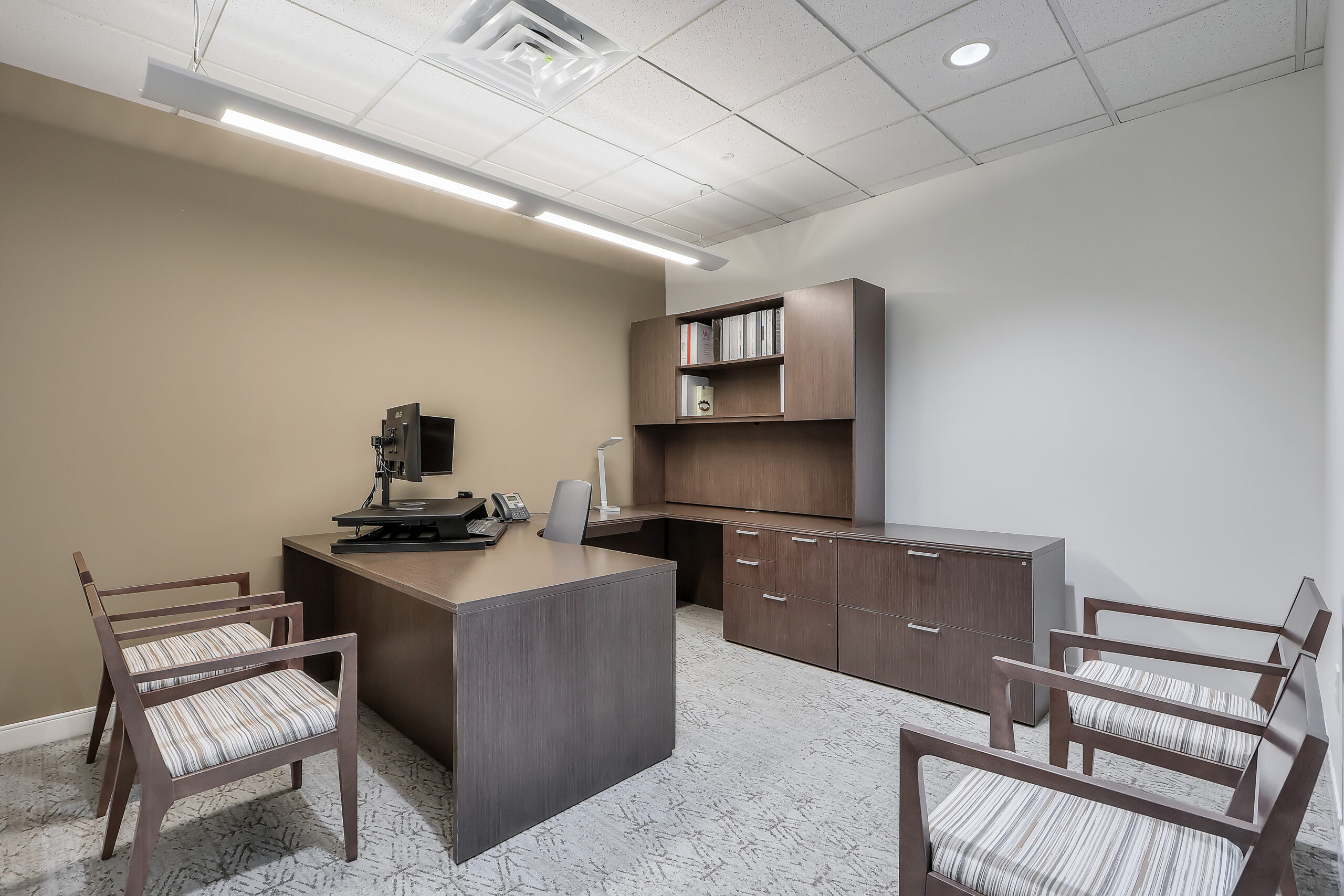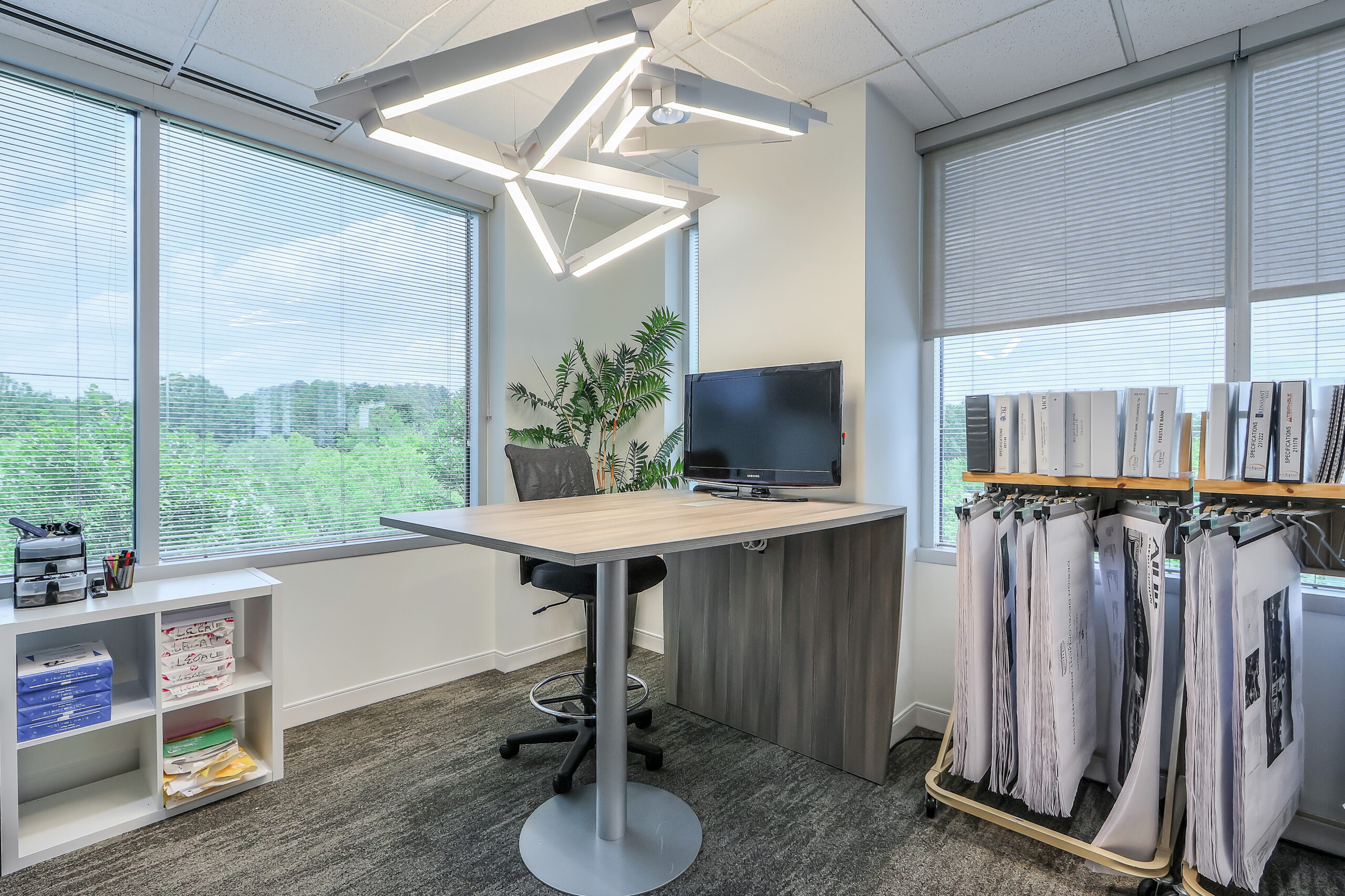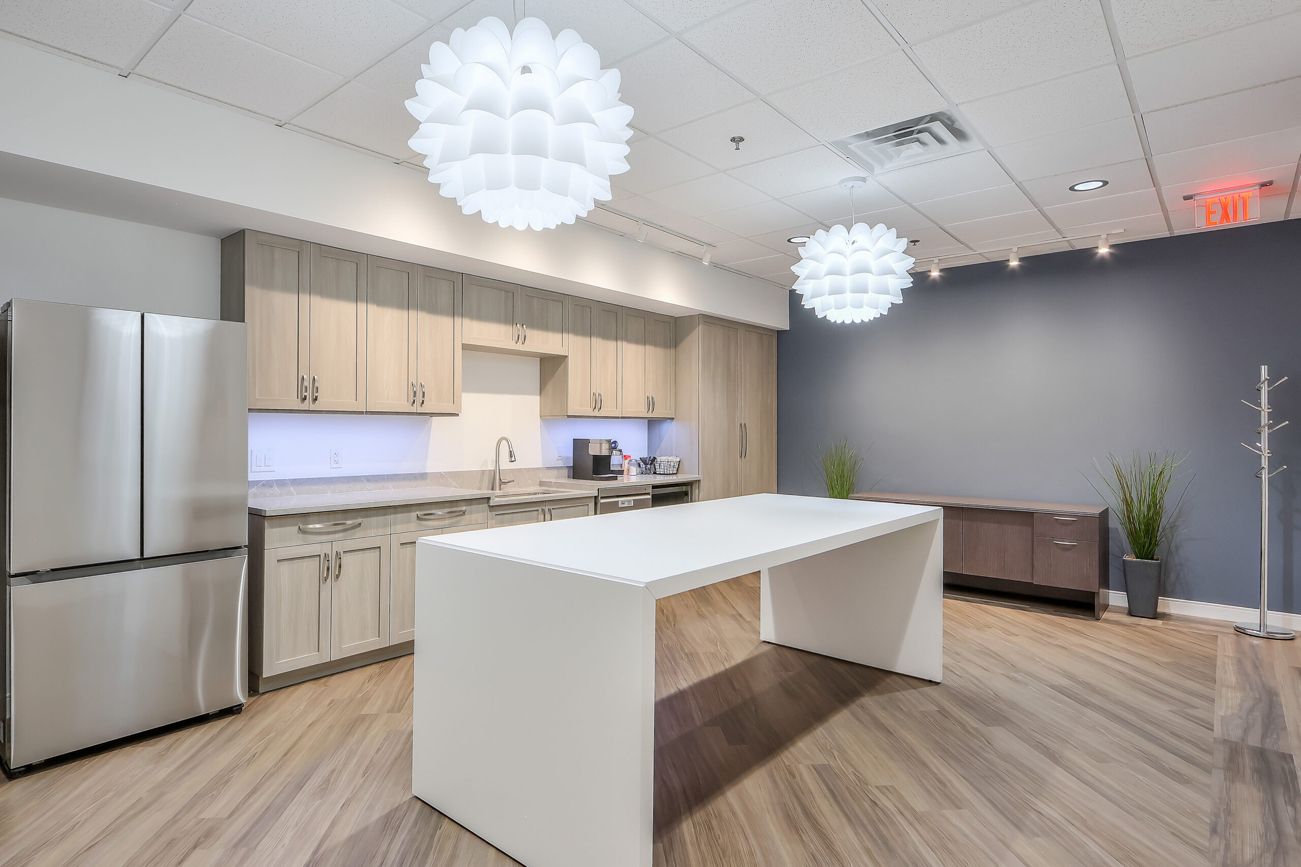 The office features 11 private offices, each uniquely styled with different furniture sets and fabric patterns to highlight Eclipse’s broad range of selections. A spacious lounge, large 14-seat conference room, and in-house library create central gathering points that encourage collaboration, team discussions, and knowledge sharing.