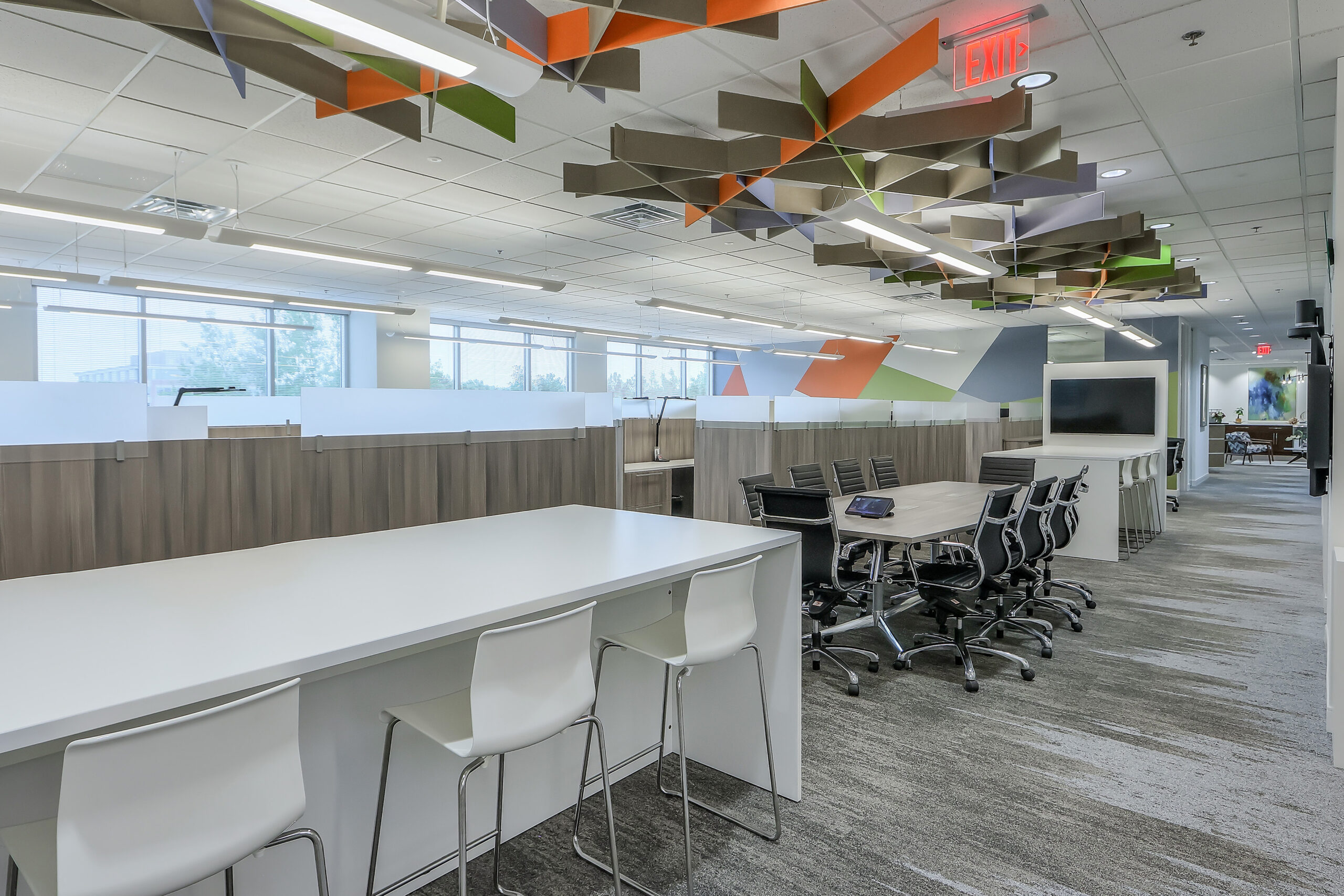 Natural light, bold colors, playful patterns, and warm wood tones flow throughout the space, complementing open work areas and reinforcing an atmosphere of creativity and energy. By combining workspace and showroom, the Alpharetta office not only enhances the daily environment for Eclipse’s team but also demonstrates the design possibilities available to clients.