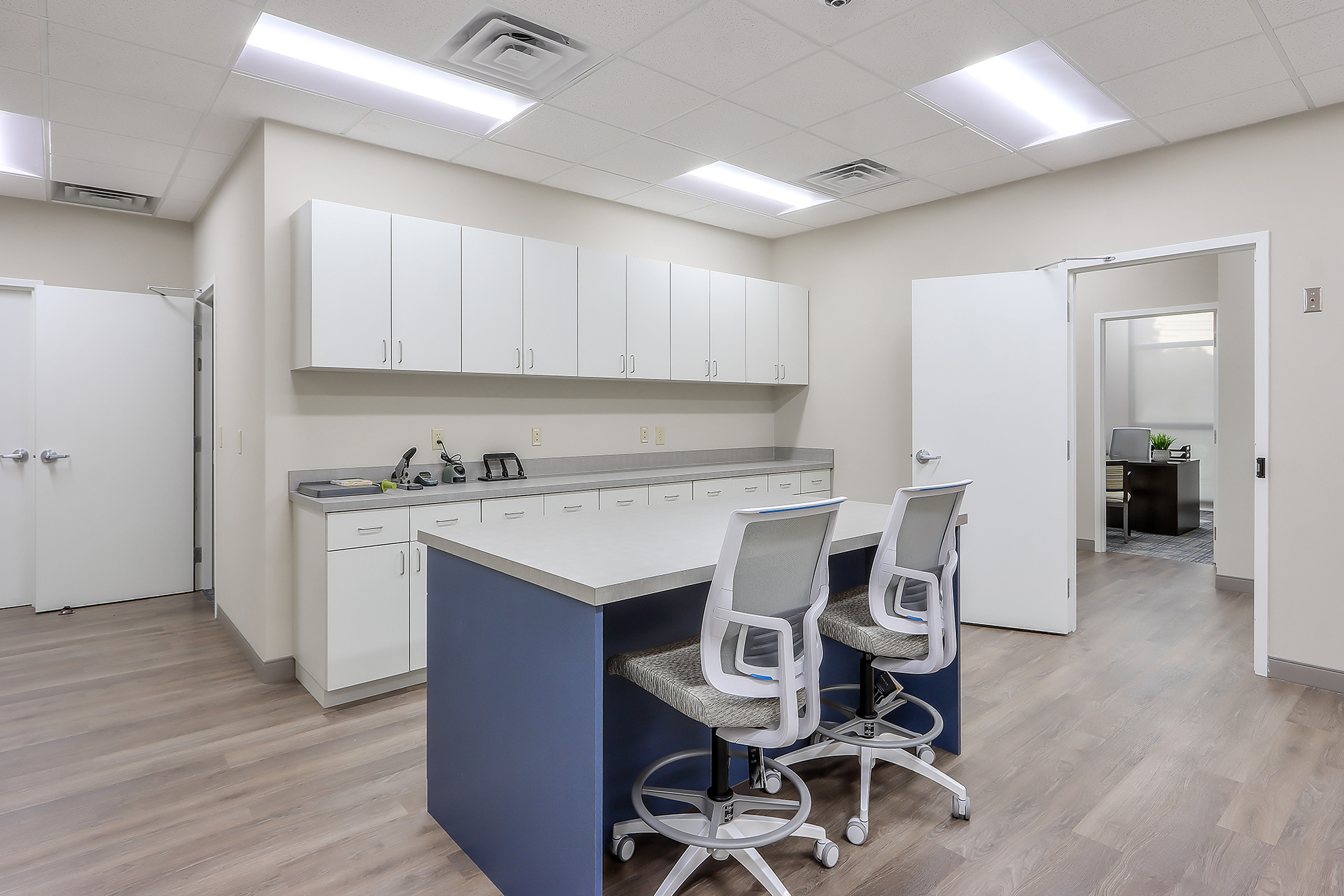 Inside, customers are greeted by a comfortable waiting area that exudes a modern and welcoming atmosphere. The newly designed transactional teller line optimizes efficiency and streamlines customer interactions, ensuring a seamless banking experience. Five offices have been strategically created to provide a private and personalized setting for consultations and financial guidance. The addition of a break room and a future call center further enhances the branch’s functionality.