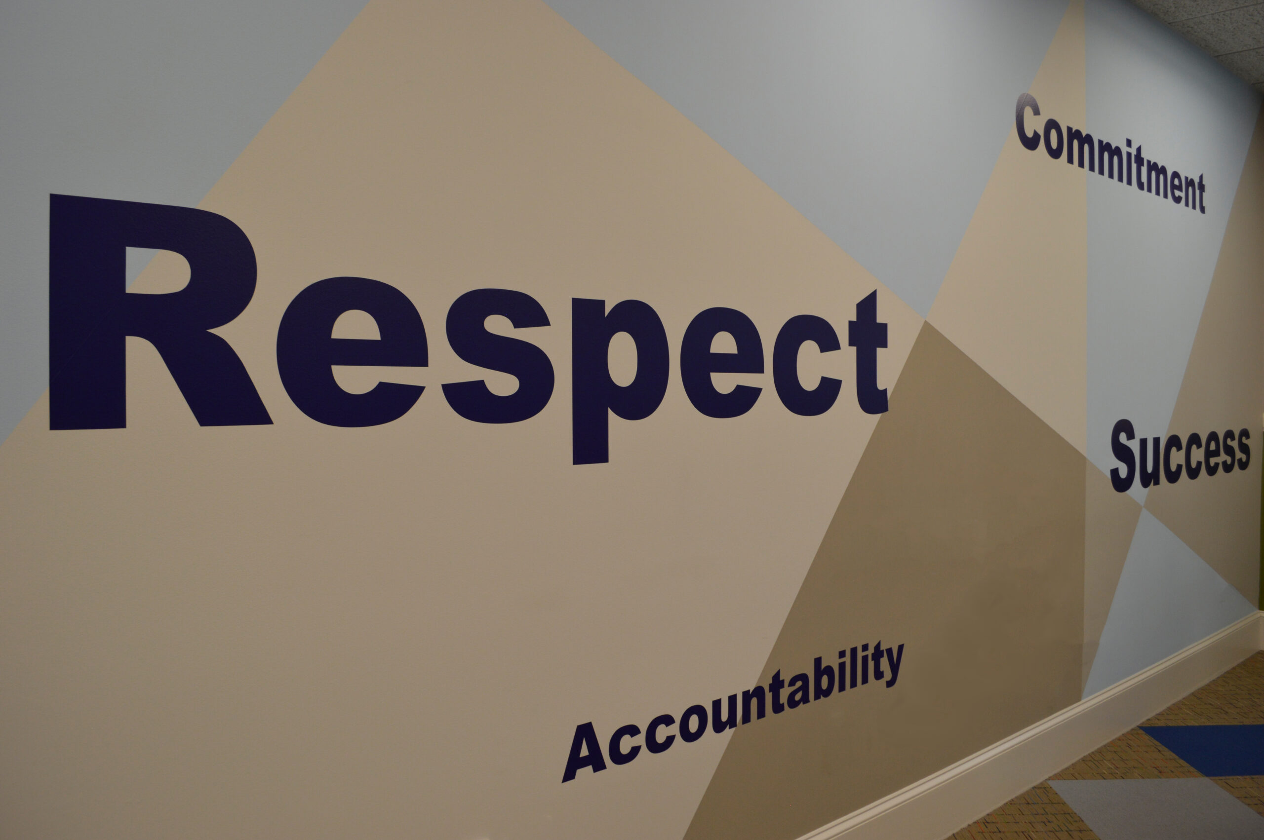 Eclipse accomplished this by introducing bold pops of color on inviting base tones throughout the updated facility, which included a coordinated scheme of multicolored carpet, workstation panels, paints and acoustic ceiling panels, as well as a large custom graphic mural proudly illustrating United Bank’s core values.